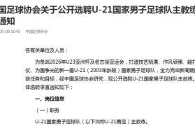 5月9日,中国足协官方发布关于公开选聘U21国家男子足球队主教练的通知。...