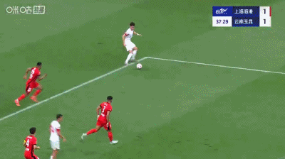 第37分钟,扳平比分,奥斯卡头球得分,云南1-1