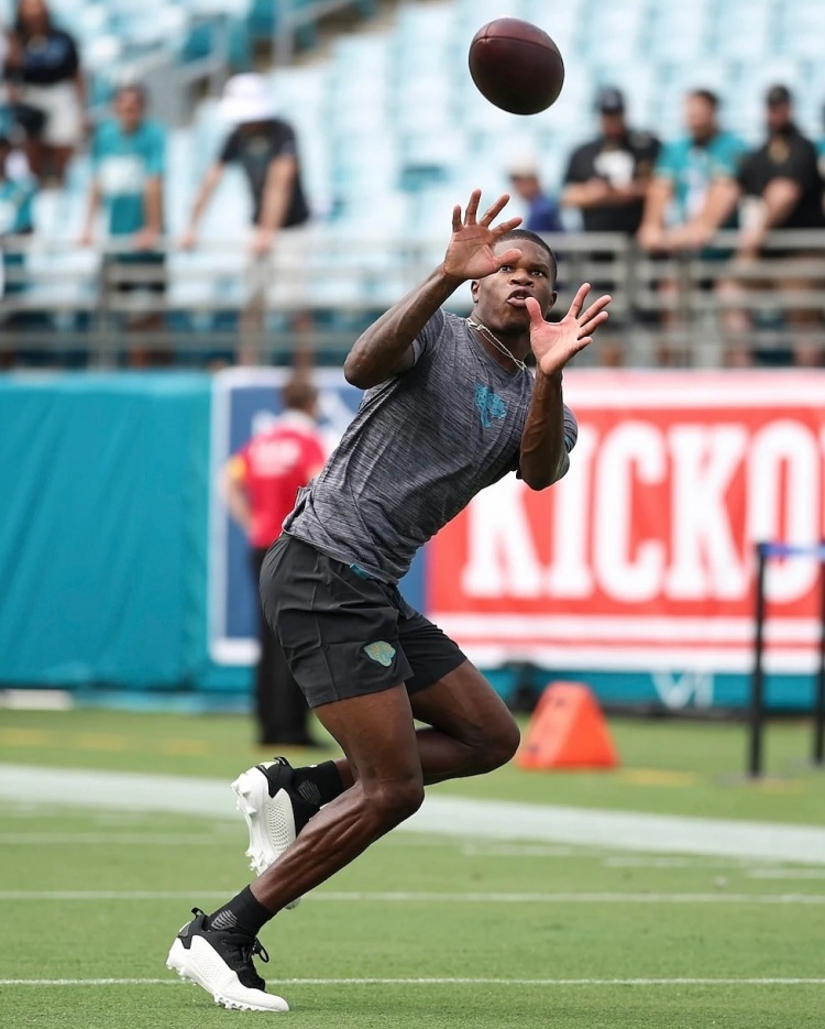 NFL新赛季于9月8日正式开启,在杰克逊维尔美洲虎与卡罗莱纳黑豹的比赛中,球队榜眼秀特拉维斯-亨特穿着一双特别定制战靴亮相赛场。