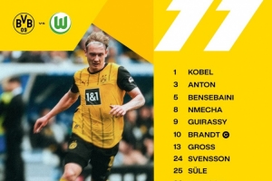 多特vs沃尔夫斯堡首发:吉拉西、吉滕斯领衔,布兰特出战